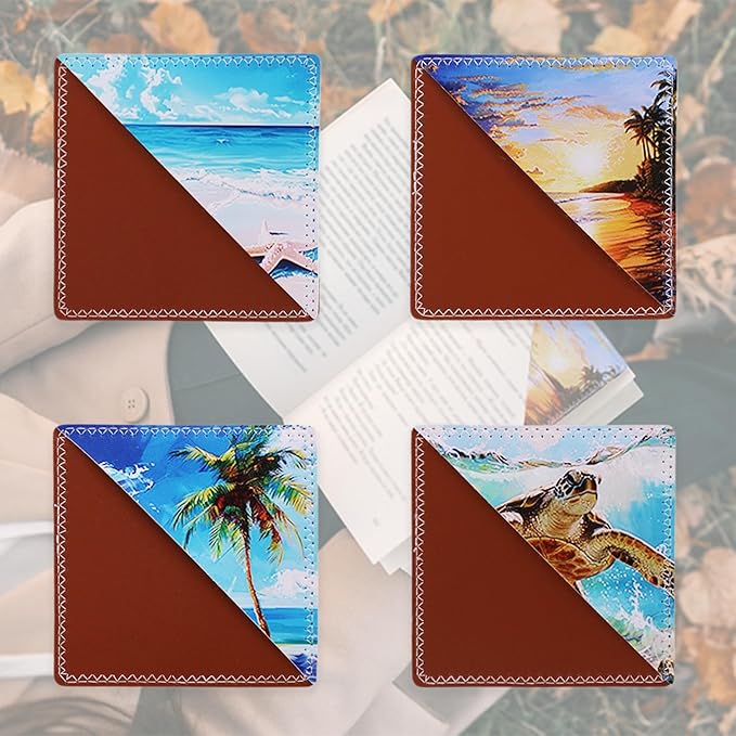 4 Pieces Leather Bookmarks, Cute Book Accessories for Reading Lovers, Page Markers for Women Men Kids Students Teachers Retirement Birthday Gift (Beach)