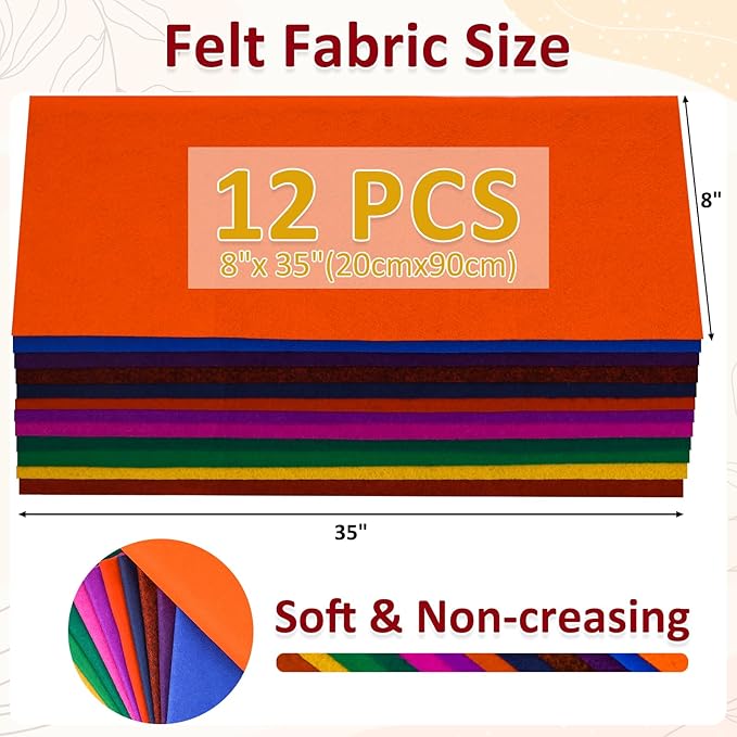 - 【Rich Color Combinations】:Our felt fabric portfolio contains 12 dark series colors,the size of each roll is 8 "x35"(20.5x90cm) and the thickness of the felt is about 1.4mm. These craft felt are Thick and light tight, it can withstand prolonged use without wear or tear.