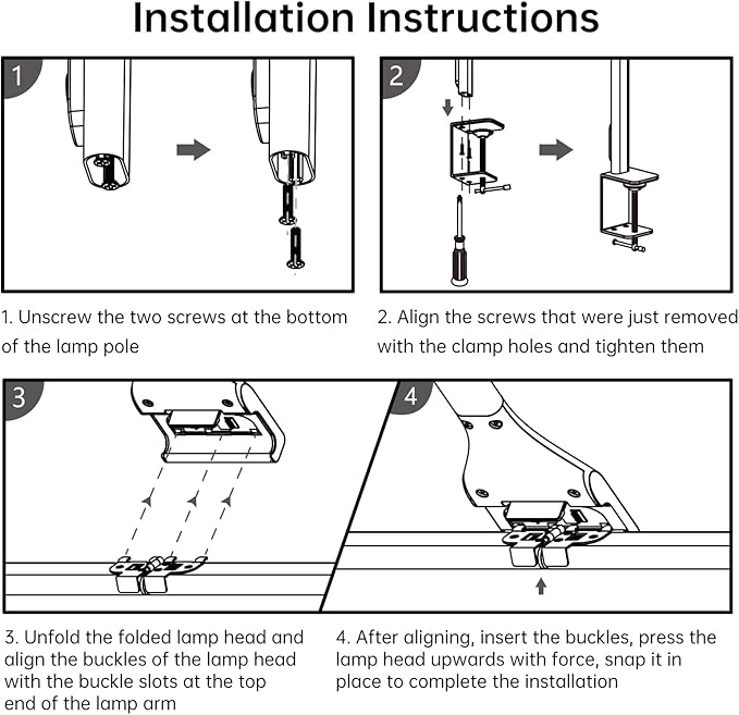 - 【Flexible & Adjustable Office Lighting】2 Strong-support rotatable shafts on the swing arm desk lamp, which can freely adjust the angle and height of the lamp to meet your daily use. The clamp on lamp is made of premium aluminum alloy and ABS, with good heat dissipation and long service life; the lamp clamp has a silicone pad to prevent scratching the desk; HUMIIEYE provides 24hr after-sales service and a 24-month warranty. If you have any questions please feel free to contact us.
