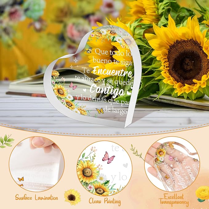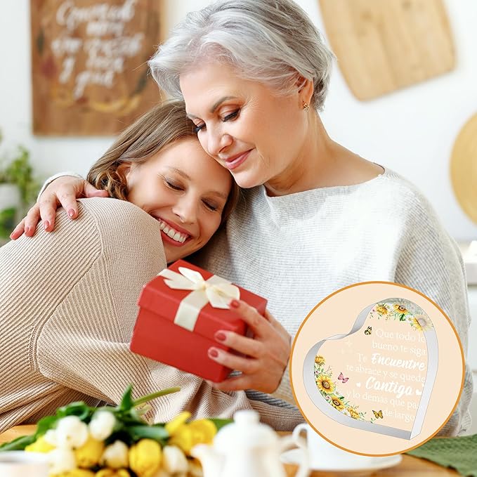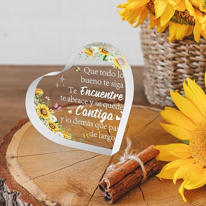 Yopyame Spanish Gifts for Women - Ideal para Amiga Madre Hermana Acrylic Heart Plaque Inspirational Warm Word Acrylic Sign Keepsake Paperweight Gift for Christmas Mother’s Day Birthday in Spanish