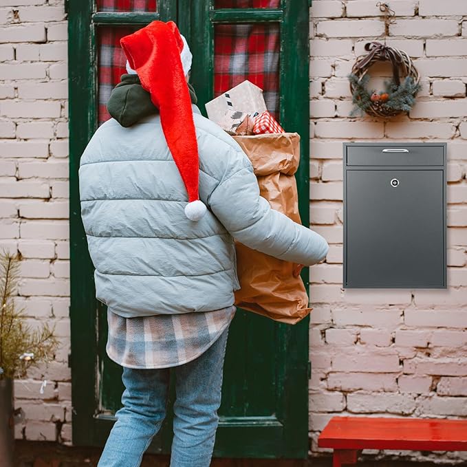 - Quality Material: crafted from quality metal material, this robust drop box promises durability; The wall mount mailbox is coated with dark gray plating which prevents peeling off paint and rust, extending the product's service life