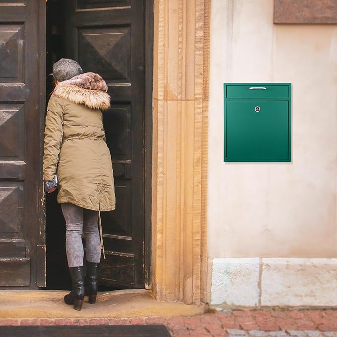 - Quality Material: crafted from quality metal material, this robust drop box promises durability; The wall mount mailbox is coated with green plating which prevents peeling off paint and rust, extending the product's service life