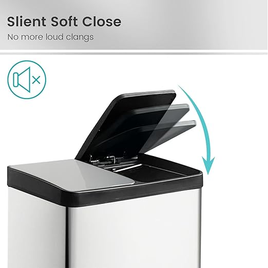 - Silent Close Lid Technology: Say goodbye to noisy trash cans! Our combo trash and recycle kitchen bins can is equipped with a silent close lid mechanism, ensuring a smooth and quiet closing every time. This feature is perfect for families with small children or pets, as well as those who appreciate a peaceful home environment.