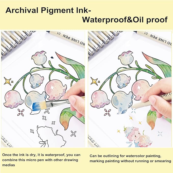 - Versatile & Waterproof [Except Brush Tip and Soft Tip (╥﹏╥)]: Once the ink of this micro pen dries, it becomes waterproof. You can use these fineliner pens before or after applying other art materials, such as watercolor, acrylics, or oil paints, to achieve different artistic effects. Ideal for calligraphy, drawing, and journaling, making them a must-have for every creative project.
