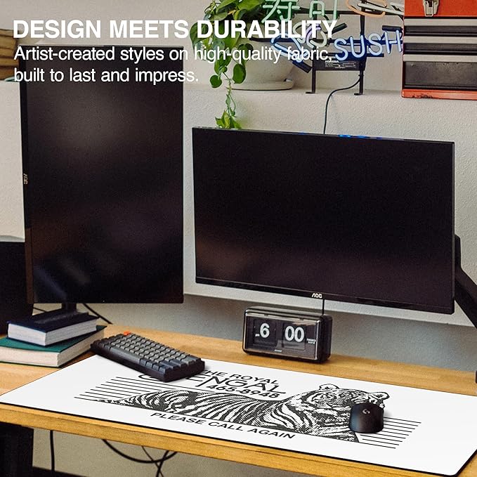 MPCO. OZGMX Large Gaming Desk Pad - 36" x 17" Aeroglyde Fabric Royal Bengal White Desk Mats - Non-Slip, Washable, Smooth Glide for Precision Gaming & Work
