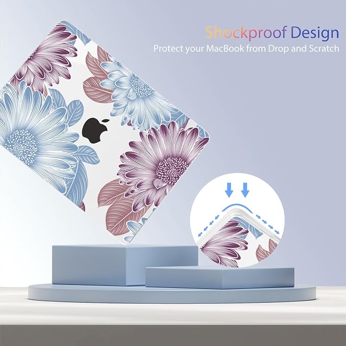 Teryeefi Compatible with M2 M1 MacBook Pro 13 Inch Case A2338 A2289 A2251 A2159 A1989 A1706 A1708 (2024 20203 2022-2016), Hard Shell Case & Keyboard Cover for Mac Pro 13" - W-Flowers