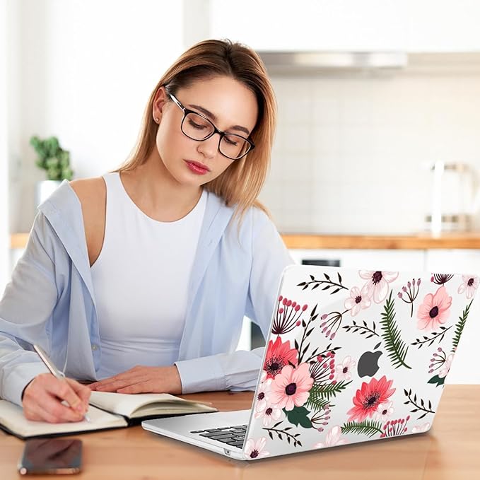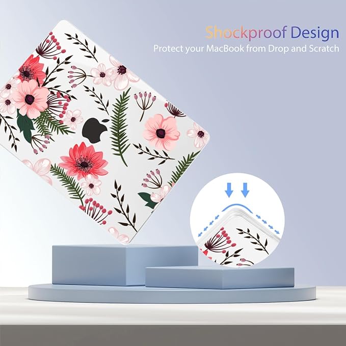 Teryeefi Compatible with M2 M1 MacBook Pro 13 Inch Case A2338 A2289 A2251 A2159 A1989 A1706 A1708 (2024 20203 2022-2016), Hard Shell Case & Keyboard Cover for Mac Pro 13" - W-Floral Pattern