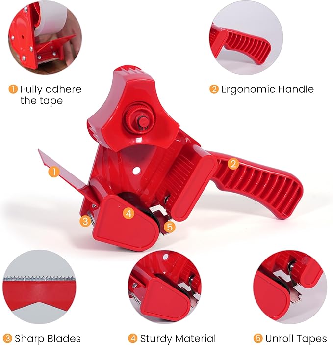 - TAPE WITH DISPENSERE GUN: This moving tape comes with a dispenser that can neatly cut tape to the desired length without tangling or sticking to itself, making it a breeze to get your packing acctivities done quickly and efficiently.