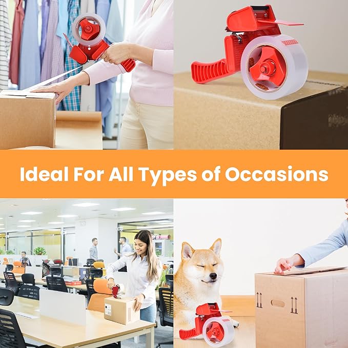 - WIDELY APPLICATION: This shipping tape with dispenser can be used in schools, offices, factories, warehouses and other packaging and transportation industries. Even you can use it to clean pet hair from sofas and clothes.