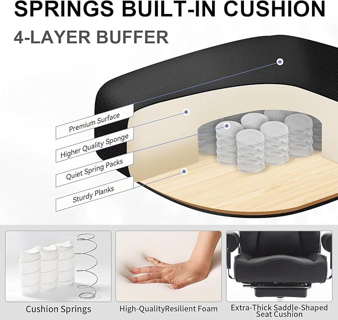 - ERGONOMIC DESK CHAIR FOR LONG HOURS — This chair features adjustable height, armrests, and a reclining back that tilts from 90° to 135° with customizable tilt tension. HIGH BACK OFFICE CHAIR WITH FOOTREST — The office chair includes a retractable footrest, letting you relax or sit cross-legged while reading. This ergonomic chair works great as a desk chair, gaming chair, or computer chair for all-day use.