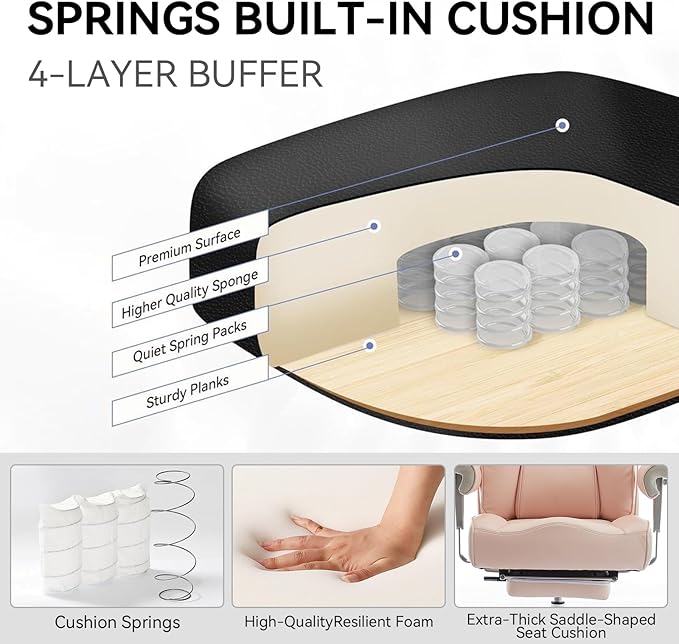- LUXURIOUS AND UNIQUE OFFICE CHAIR The pink office chair combines elegant design with a unique look, adding a stylish and vibrant touch to your office or home. The tall and tall office chair features a high-back design paired with a thick, saddle seat cushion. make it more than just an comfy office chair—it’s a statement piece that elevates your space, showcasing Youth and Confidence