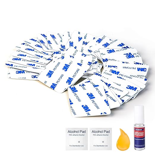 - 【Abundant Quantity】Contains 32 pieces Made of 3M PE Strong adhesive double-sided tape, square 1.69x2.15 Inch, to meet your wider use. And a bottle of adhesion promoter and two alcohol pads.