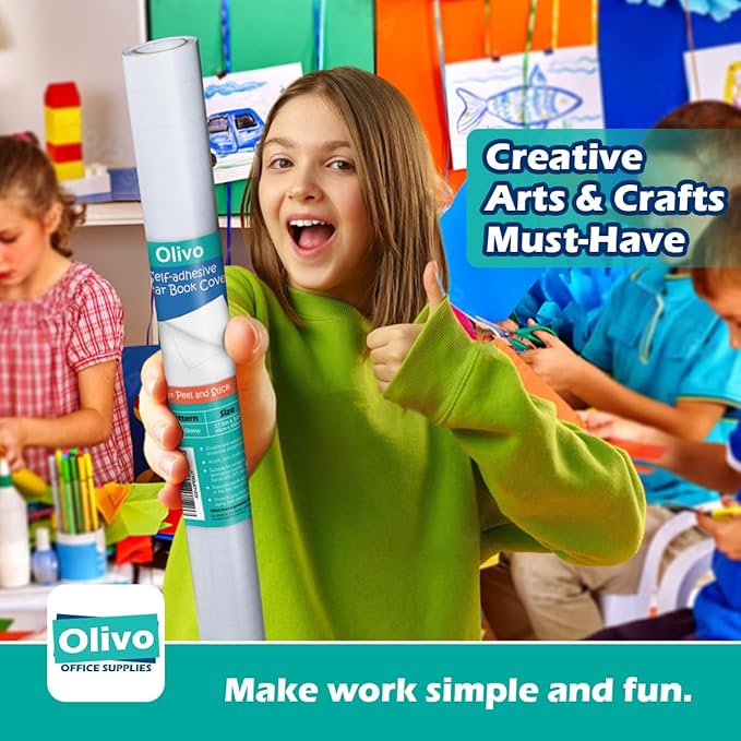 Olivo Clear Contact Paper Roll for Books Crafts 17.5 in x 5 ft Peel and Stick Adhesive Book Cover Plastic Protector