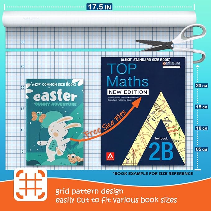 - The clear contact paper roll measures 17.5 inch wide by 5 feet long, with a 2.5 mil balanced thickness sticky protector film for books crafts recommend