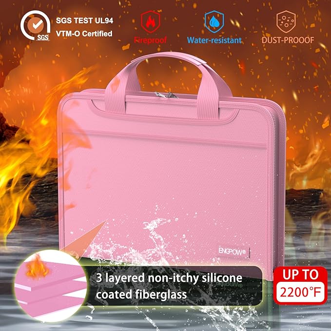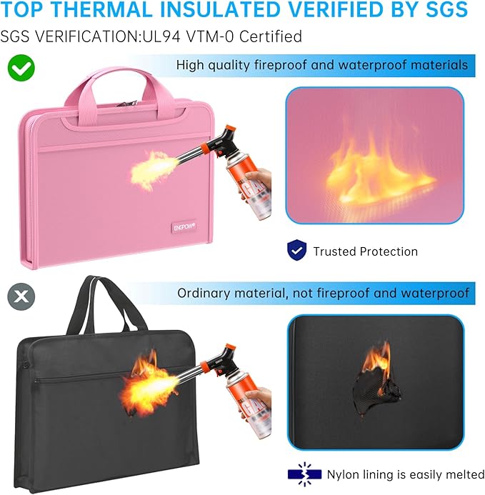 - High-Quality Materials: Protect your files with ENGPOW fireproof accordion file organizer.It is made of 3-layered non-itchy silicone-coated fiberglass which withstand the temperature up to 2200℉.It has been passed by SGS TEST(UL94 VTM-0 Certified).Fireproof File Folder is fireproof&Water-resistant,which can effectively protect your important documents in a fire,flood,and wet weather. They will further keep your files intact.Giving you time to save your important documents when disaster strikes