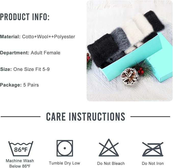 • 【Ideal Gift Choice】These winter wool socks are packed in exquisite gift boxes and are perfect gifts for women, mom, friends, wife, girlsfriend. Best womens gifts for their birthday and other festvial, including Valentine's Day, Mother's Day, Thanksgiving, Halloween, Christmas, and New Year.