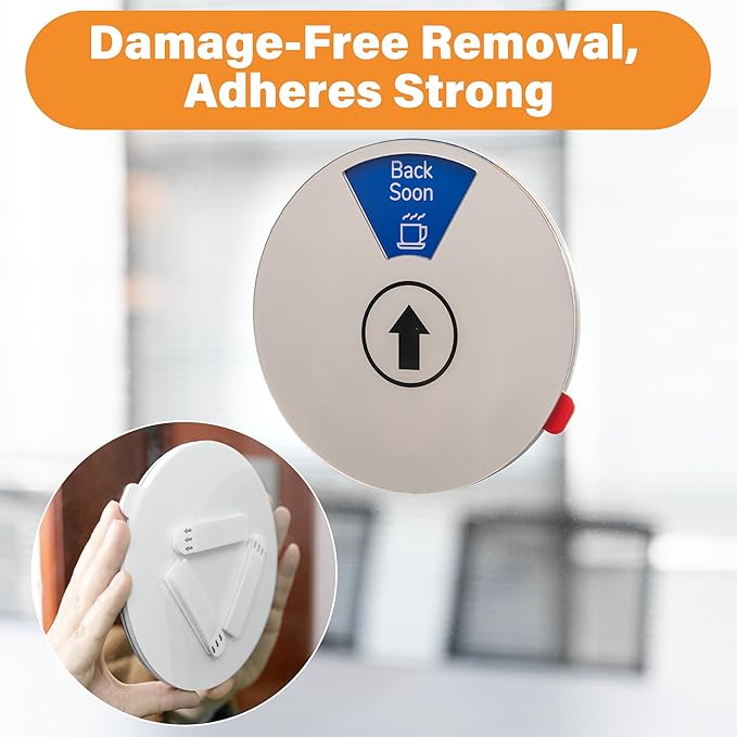 - 6 Status Switching: The door plate has 6 statuses to choose from, including Please knock, Working remotely, In a meeting, Out of office, Back soon and ‘Do not disturb. Quickly switch between them as needed, the smooth front and magnetic back design helps you communicate your current work status to your coworkers and boss.