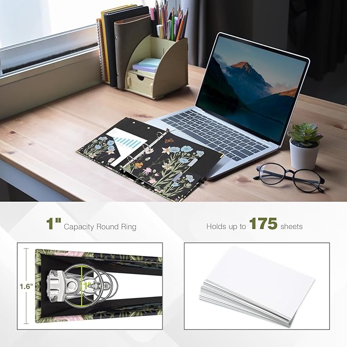 - 【1-inch Rings, 1.61-inch Spine】1-inch round rings; Product Dimensions: 7.52 x 9.53 x 1.61 inches (LxWxH); Holds 5.5 x 8.5-inch documents; 175 sheet capacity.