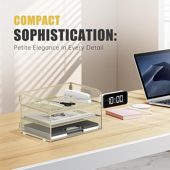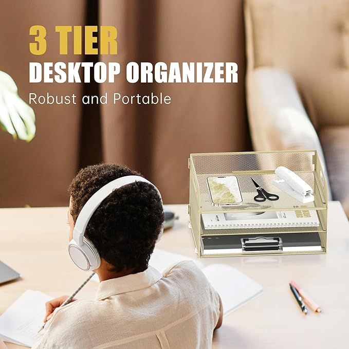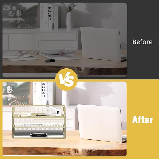 - 3 Tier Large Capacity: Our upgraded desk organizer features a 3 tier paper tray design, providing ample space for organizing letters, A4 paper, books, bills, magazines, mails, folders, notebooks, and more. With detachable trays, this organizer maximizes vertical space utilization, keeping your desktop neat and orderly.