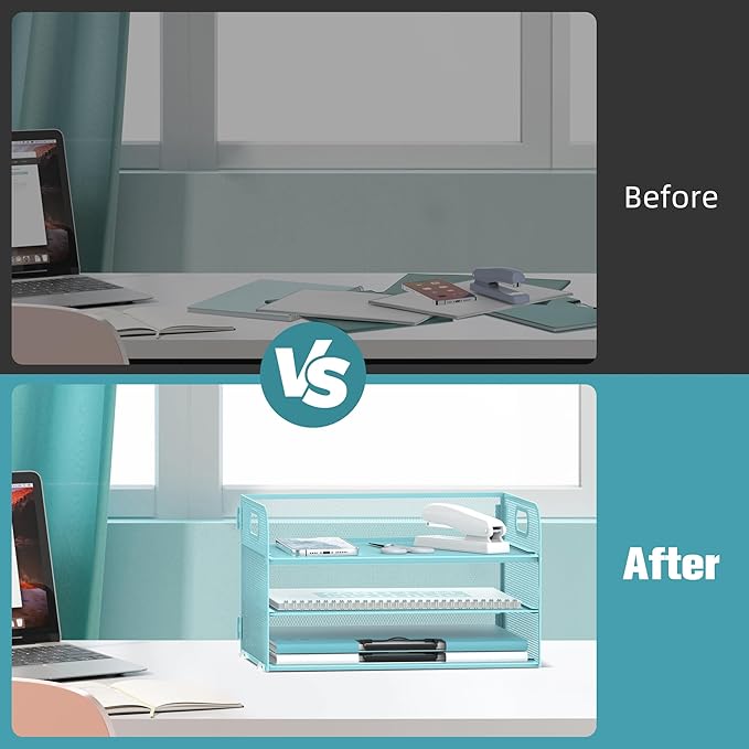 - 3 Tier Large Capacity: Our upgraded desk organizer features a 3 tier paper tray design, providing ample space for organizing letters, A4 paper, books, bills, magazines, mails, folders, notebooks, and more. With detachable trays, this organizer maximizes vertical space utilization, keeping your desktop neat and orderly.
