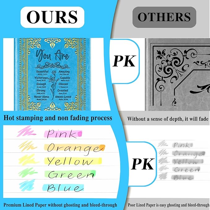 - The bible verse leather notebook with inspirational words from bible verses, it is inspiring and gives you the strength to face difficulties.