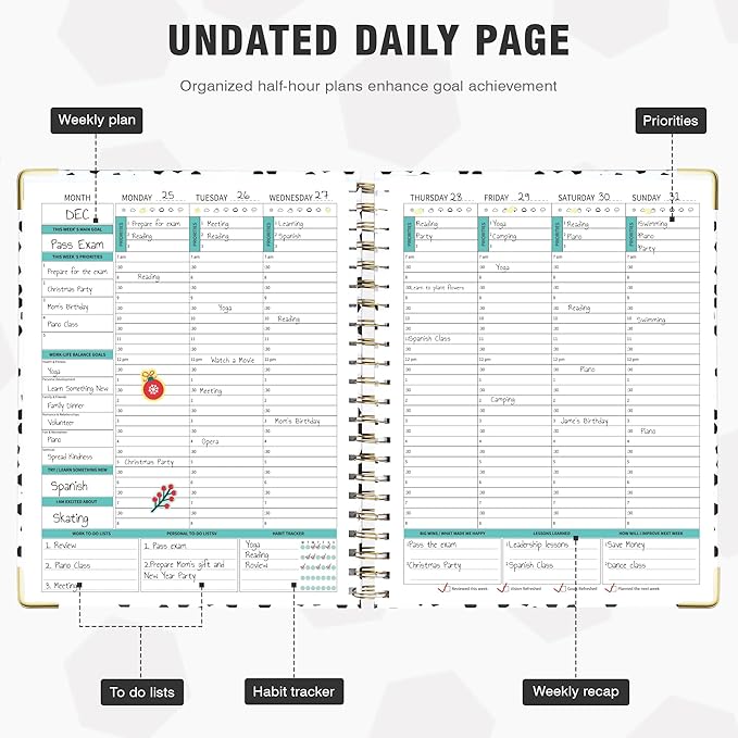 - Boost Your Productivity: Additional accessories included: instructions, bookmarks, stickers, and labels. Whether for work, study, or personal use, this planner is the perfect tool for achieving your daily priorities and taking control of your schedule.