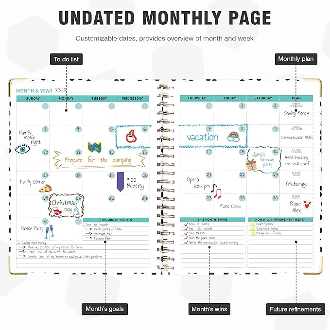 Ospelelf Undated Spiral Planner 12 Months, Daily Weekly and Monthly Academic Planner with Clip 8.5 x 11