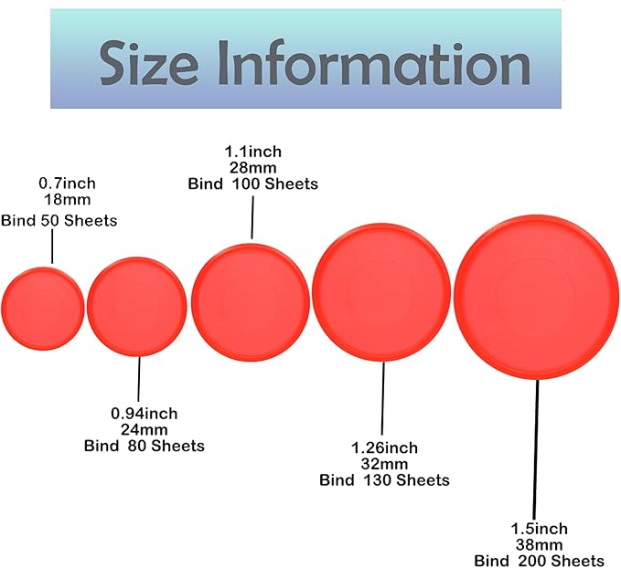 - 5 Sizes Options about Discbound Planner Discs Replacement:MINI 18mm(0.7 inch)for around 50sheets , S 24mm(1 inch)for around 80 Sheets,M 28mm(1.1 inch)for around 100Sheets ,L 32mm(1.26 inch)for around 150Sheets ,XL 38mm(1.5 inch)for around 200Sheets ,meet your various usage needs.