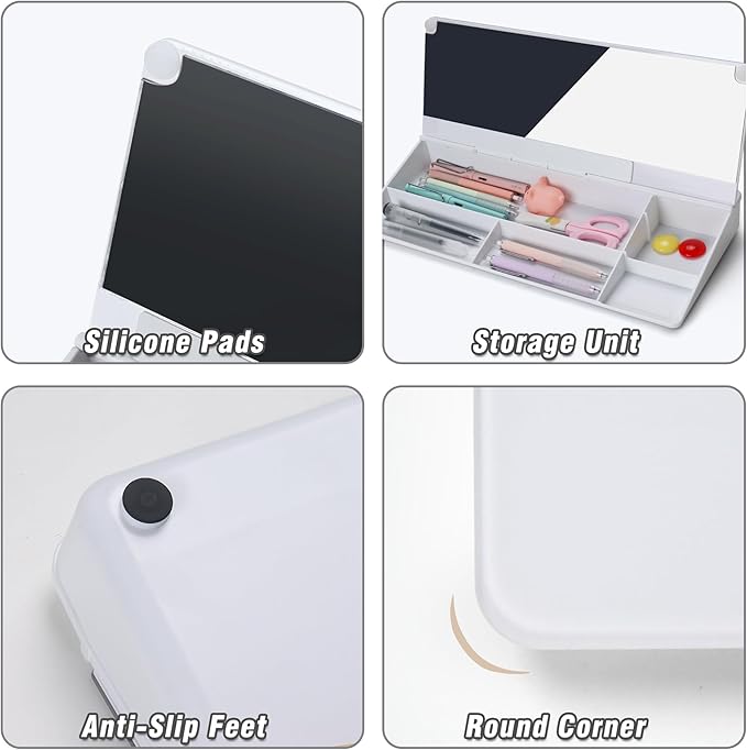 - 💯MULTIFUNCTIONAL: Writing+Storage+Hold+Keyboard Stand, our desktop white board is an all in one multipurpose desk board buddy. Equipped with 2 white dry erase marker and 1 blue eraser. One purchase, All in place!