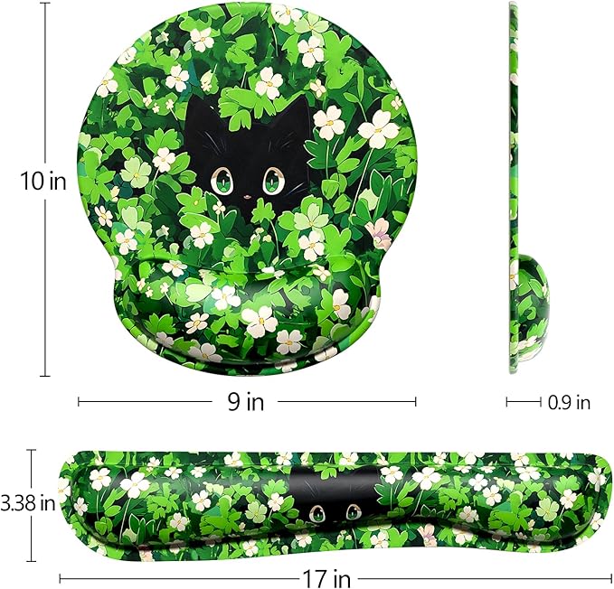 - Optimal Size: 17*3.38*0.9 inch keyboard wrist pad offers more support to your wrist, 10*9*0.9 inch large mouse pad allows your mouse to move freely. Perfect size fits most keyboards, laptops and mice