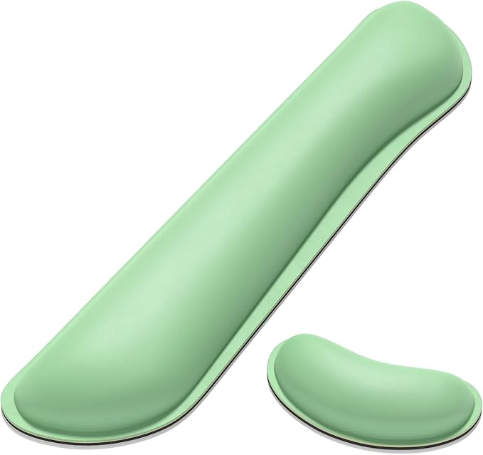 Dapesuom Keyboard Wrist Rest Set, Cute PU Leather Wrist Cushion for Computer Keyboard and Mousepad, Memory Foam Mouse Pad Rests Support with Non-Slip Base for Typing Pain Relief, Laptop, Mint Green