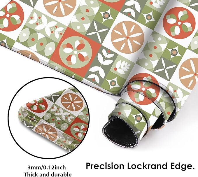 Galdas Gaming Mouse Pad XXL XL Large Long Extended Big Mousepad Non-Slip Rubber Keyboard Mouse Pad with Stitched Edges for Laptop Home Office (31.5x11.8x0.08 Inch) … (Checkered Flower)