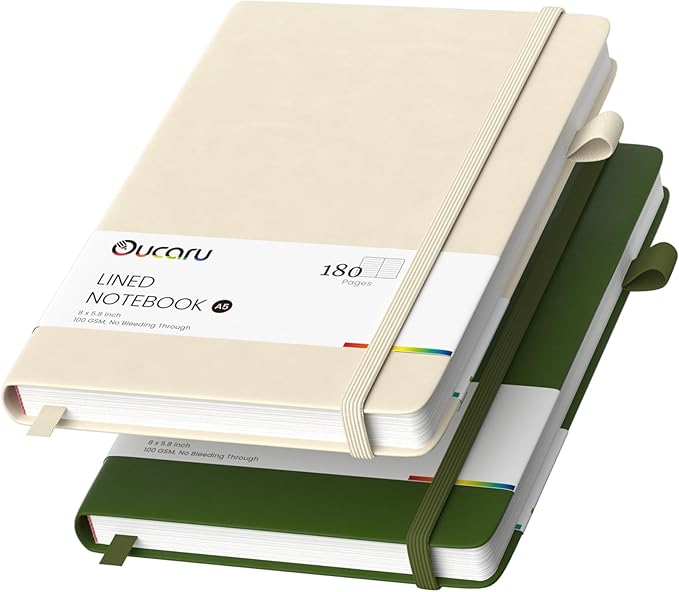 Oucaru Lined Journal Notebook, 2 Pack, 180 Pages, A5 Journals for Writing, 100 GSM Thick Paper, Small Notebooks Daily Journal for Women Men Work, Business, School, Travel Supplies