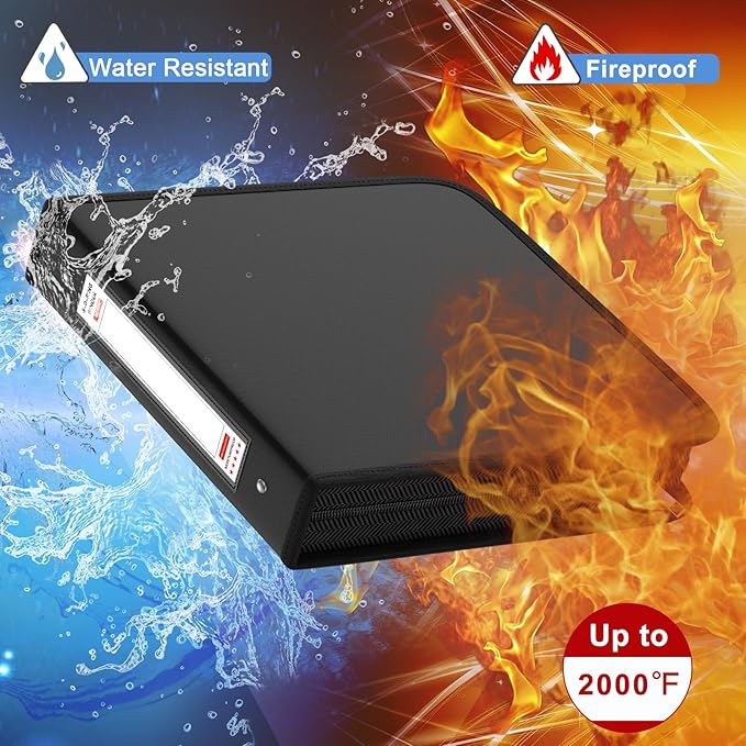 - 【Fireproof&Water-proof】ZOOPIP Fireproof 3 Ring Binder is made of anti-static double layered non-itchy silicone coated fiberglass, which can withstand temperatures up to 2000°F. 3 Ring Binder with zipper closure has been passed by SGS TEST:UL94 VTM-0 Certified. At the same time, the glass fiber has excellent waterproof performance. In most cases, our storage pouch can withstand the impact of water.