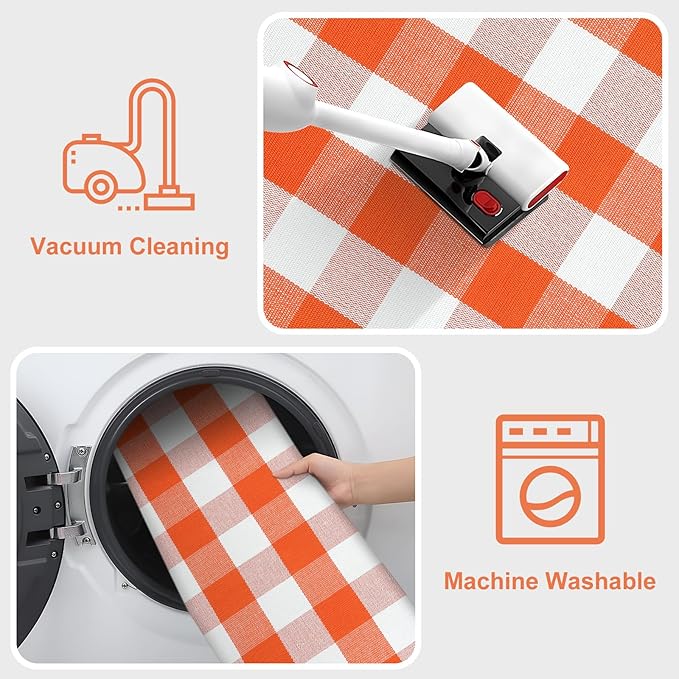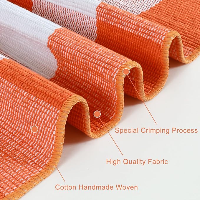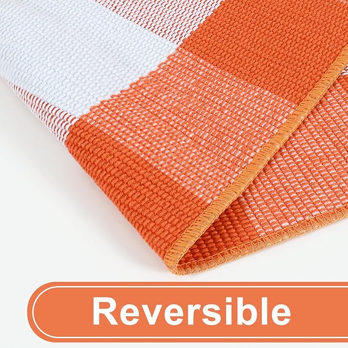 - Non-Fading Cotton Materials: Orange and white buffalo check rug made of 45%Cotton+45%Polyester+10%Viscose, soft and comfortable to the touch,the eco-friendly fabric is great at water absorption, antistatic.Due to yarns that are dyed into specific colors before being woven into a design,not printed,needn't worry faded,making it more suitable for outdoor use