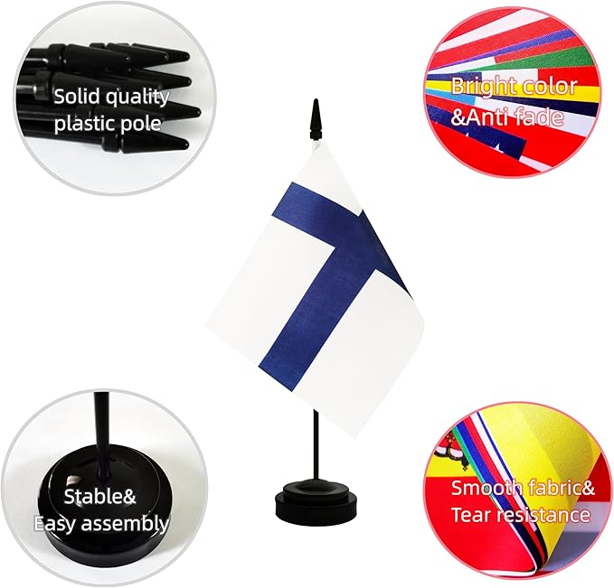 2 Pack Finland Desk Flag, Finnish Table Office Flag with Solid Pole and Stand Base, International Country Flag, Festival Celebration, Classroom Meeting Desktop Decoration (Finland)