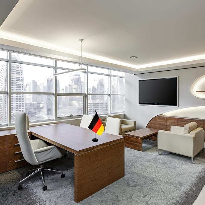 2 Pack Germany Desk Flag, Germanic Table Office Flag with Solid Pole and Stand Base, International Country Flag, Festival Celebration, Classroom Meeting Desktop Decoration (Germany)