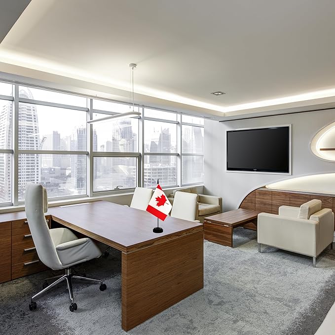 2 Pack Canada Desk Flag, Canadian Table Office Flag with Solid Pole and Stand Base, International Country Flag, Festival Celebration, Classroom Meeting Desktop Decoration (Canada)