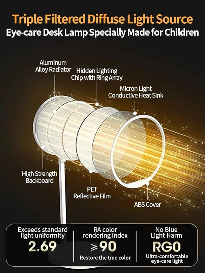- 【High Quality&Wide Application】:This children eye caring desk lamp is made of aluminum and ABS. We add some weighted material to the base which can make it more stable. The desk lamp with base suitable for study room ,office,living room and bedroom.