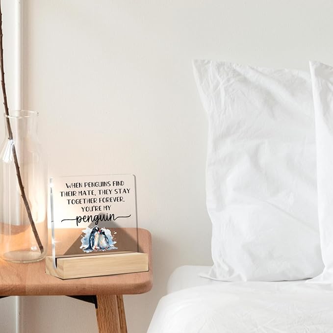 I Love You Gifts for Her Him Cute Penguin Gifts for Girlfriends Boyfriends Anniversary Sign Desk Decorative Signs Plaques 4 x 4 Inches acrylic