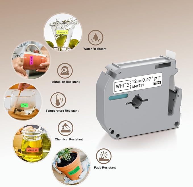 - EXCELLENT CRAFT TECHNOLOGY: Our compatible Brother M 12mm 0.47 label maker tape are designed with a split backing for easy removal; polyester-based material allows for better performance: durable, strong adhesion, oil and temperature resistant, no adhesive residue after removal.