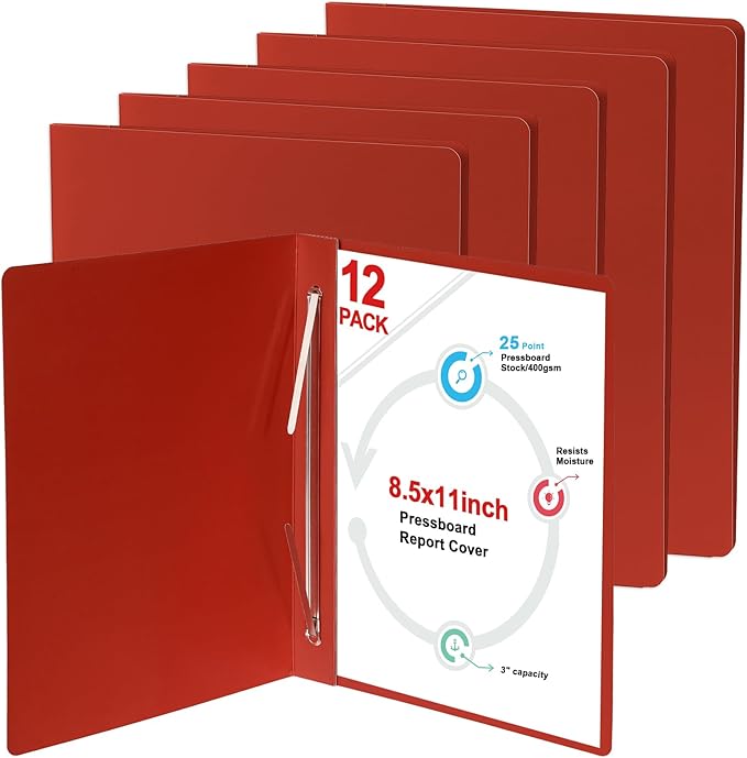 - 【Set of 12 Heavy Duty Report Covers】This package includes 12 pressboard report covers. These report covers equipped with 2piece cover and metal prongs fasteners are ideal for binding and enhancing your business documents, while a variety of colors to aiding in coding.