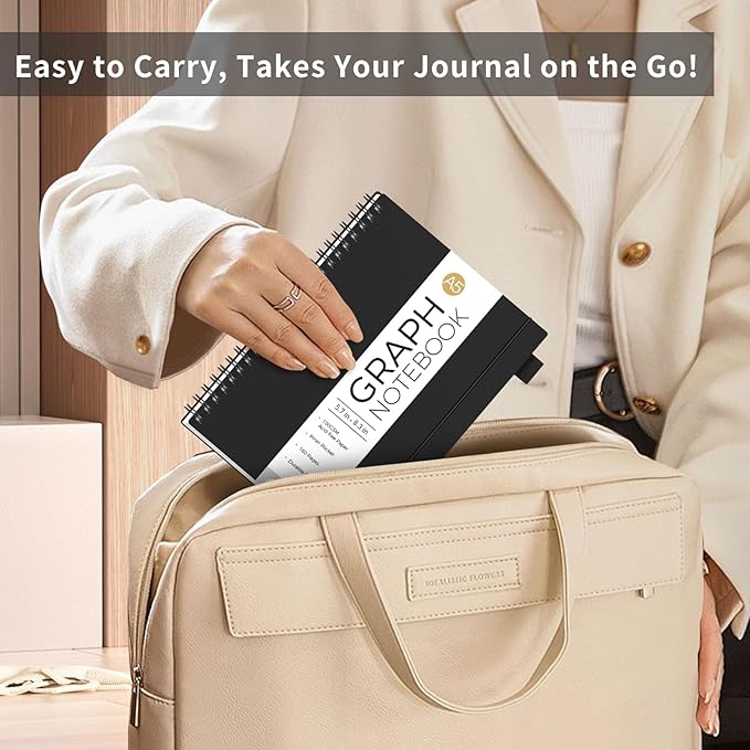 - GRAPH PAPER NOTEBOOK: The graph paper notebook features 80 sheets/160 pages, providing ample space for writing. The A5 size 5.7" × 8.3" makes it easy to carry