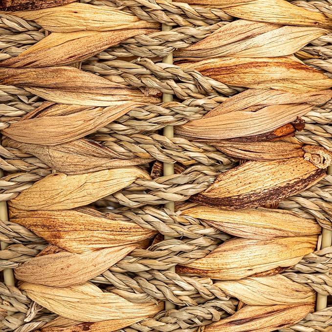 - Made of a blend of water hyacinth and seagrass, known for their durability and sustainable quality