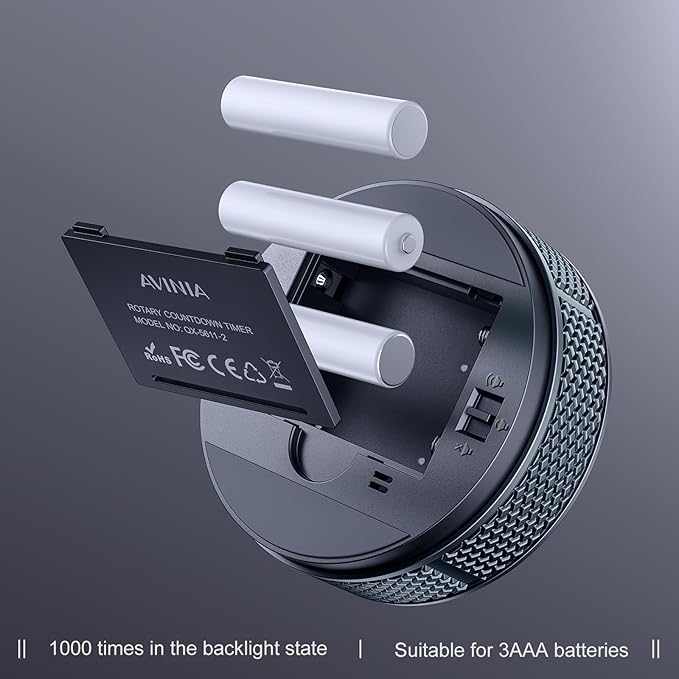 - 【 Energy saving & 365 days Guarantee】:Powered by 3 AAA batteries; if timer doesn't run and without any operation, display brightness will turn dim then light off in a few seconds. Don't worry it will not consume energy in the sleep mode. Each AVINIA TIMER has a full-year quality guarantee and detailed instructions manual, please rest assured to order.