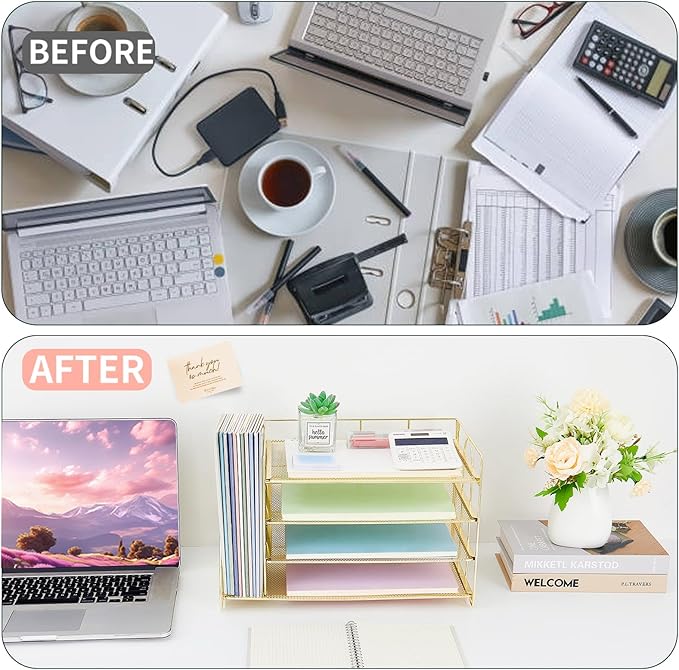 - 【Heavy-Duty & Stable】Crafted from premium metal with reinforced construction, this file organizer supports up to 40 lbs without bending. Non-slip rubber feet keep it firmly in place while protecting your desktop from scratches.