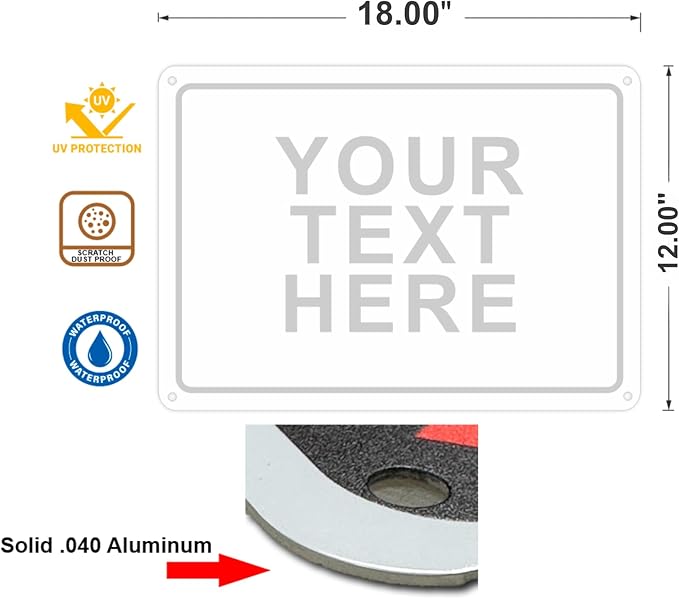 - Customizable Design: Create your own unique and original sign with long-lasting metal that wont rust or fade. Add your own text, to make the perfect custom sign for business, office, outdoor use.