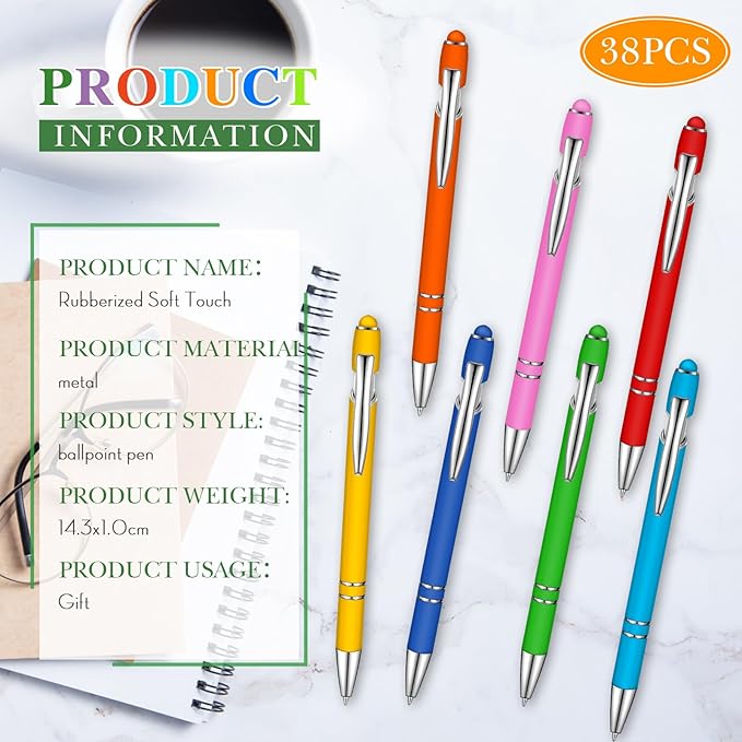 Zonon 38 Pieces Rubberized Ballpoint Pen with Stylus Tip Stylish Metal Pen Capacitive Styli with Soft Rubberized Grip, Black Ink for Most Devices(Chic Colors)