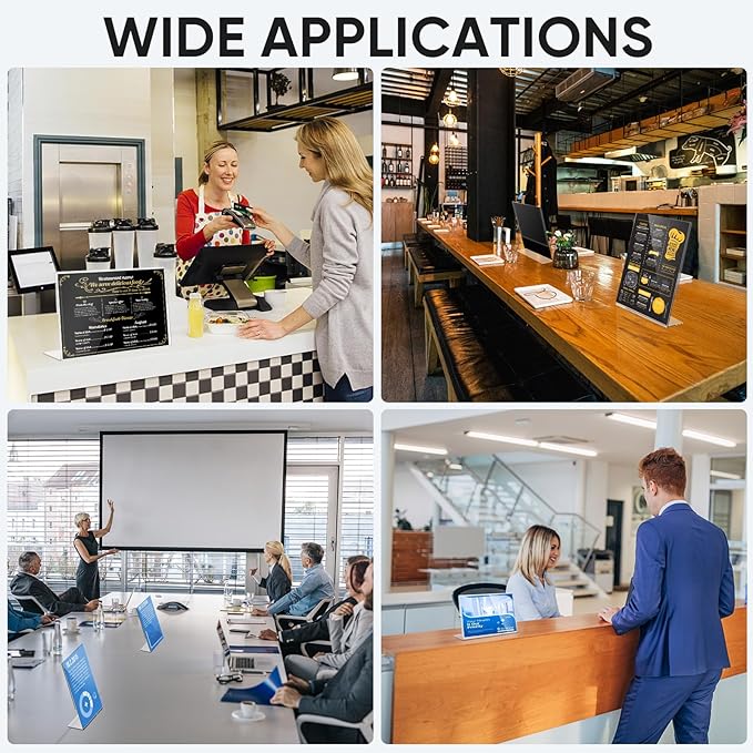 - [VERSATILE USE] This multipurpose sign holder is not limited to just signage. Perfect for showcasing photos, ads, menus, posters, brochures, and more at weddings, restaurants, shops, offices, schools, churches, exhibitions, hotels, and beyond