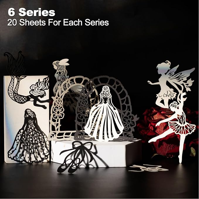 - Elegant Shadow Dance Designs: Our set includes 120 pieces of black and white paper cutouts featuring exquisite shadow dance themes. Perfect for adding a touch of elegance to your scrapbooking, journals, and various DIY projects. Let your creativity flow with these unique, intricate designs.